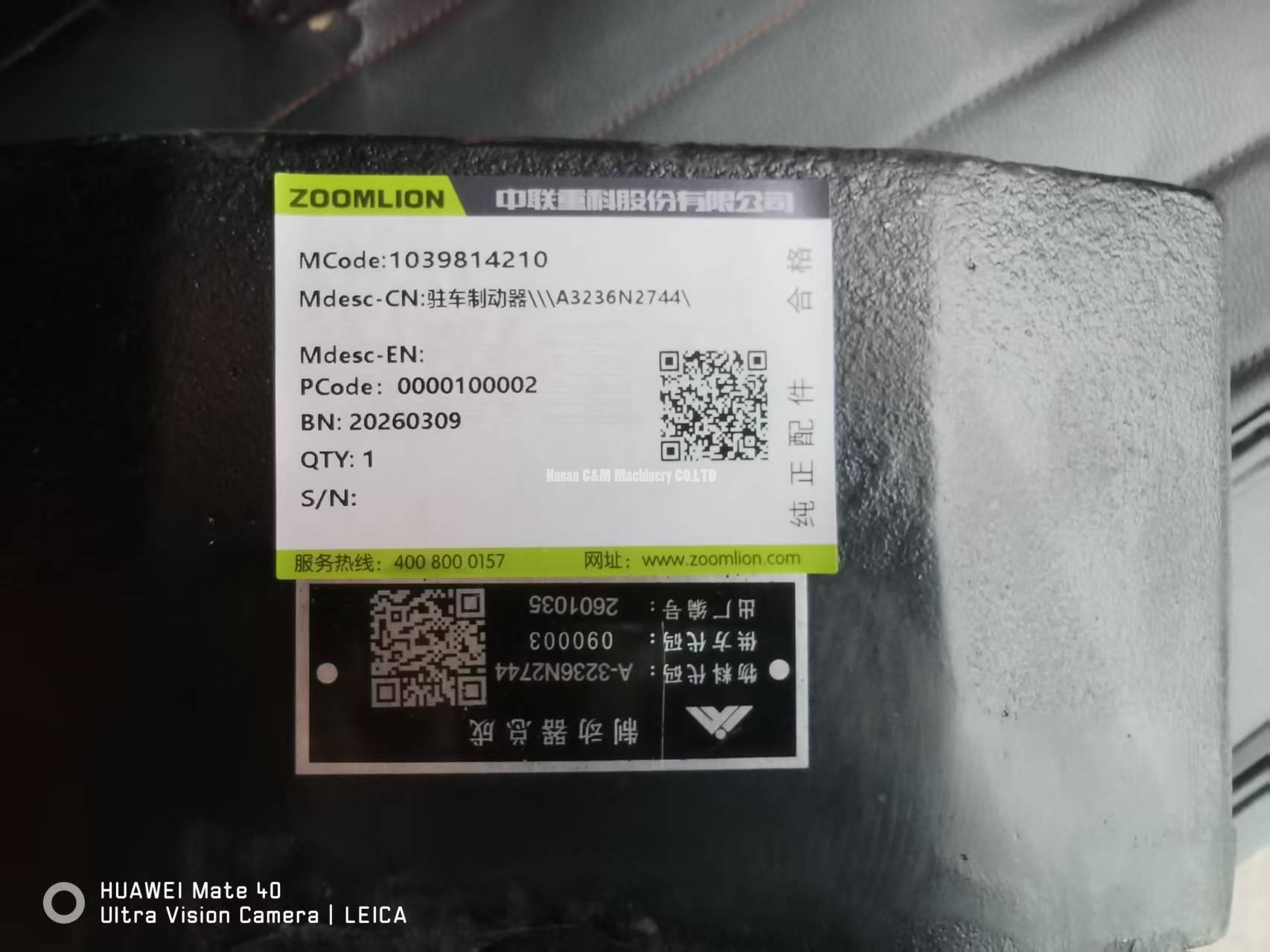 ZOOMLION ZRT850 ZRT1100 Parking Caliper Kit 1039814210 A3236N2744